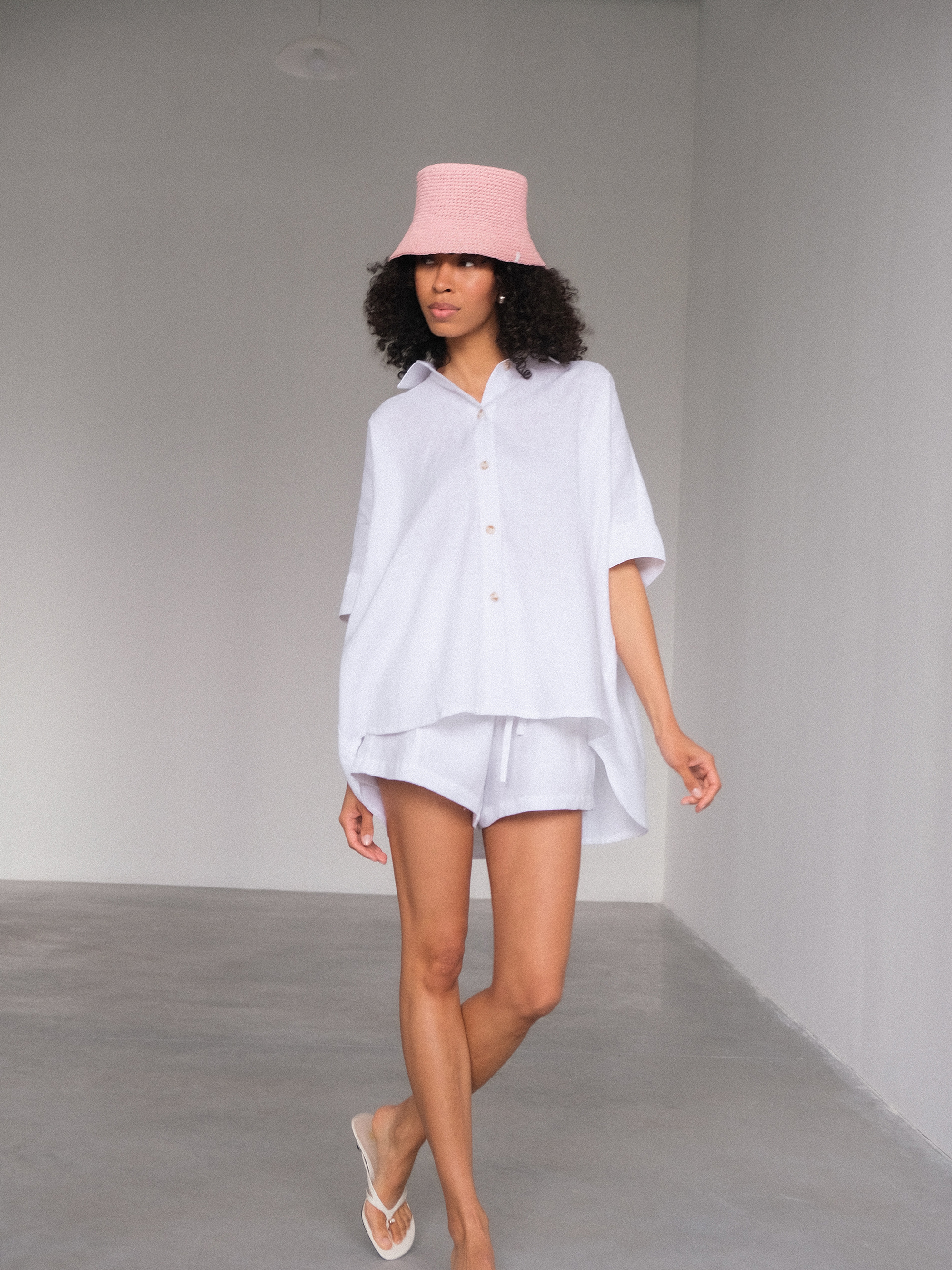 Панама гармонійно поєднується з білими, молочними, бежевими чи лляними образами CHELIE, додаючи завершеності та захисту без компромісів зі стилем.